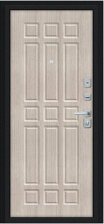 Надежная входная Дверь Браво Мило МФ/BChrome Букле черное/Cappuccino Melinga премиум класса по цене 32 983 руб. Большая толщина стали защитит от проникновения в ваш дом, квартиру или коттедж. Используется очень качественная фурнитура: замки, цилиндры, ручки, защелки. Покрытие и отделка двери изготовлено под внимательным контролем производителя. Дверь имеет долгий срок службы и гарантию.